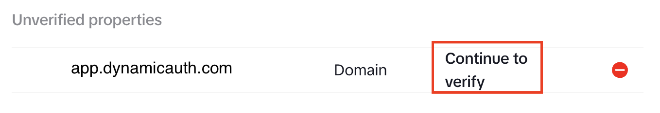 1. Click on Domain and enter app.dynamicauth.com and click Verify to the right of the text box